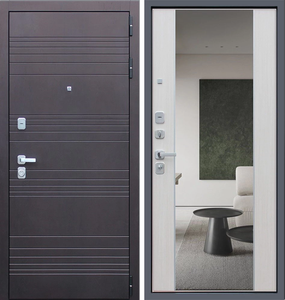 Надежная входная Дверь Дуэт с зеркалом премиум класса по цене 47 297 руб. Большая толщина стали защитит от проникновения в ваш дом, квартиру или коттедж. Используется очень качественная фурнитура: замки, цилиндры, ручки, защелки. Покрытие и отделка двери изготовлено под внимательным контролем производителя. Дверь имеет долгий срок службы и гарантию.